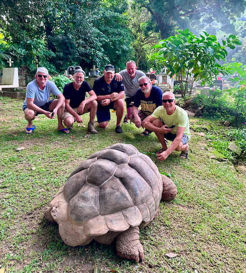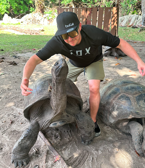 ( Mario ist auf den Seychellen jetzt als der Alpen Schildkrötenflüsterer bekannt )
