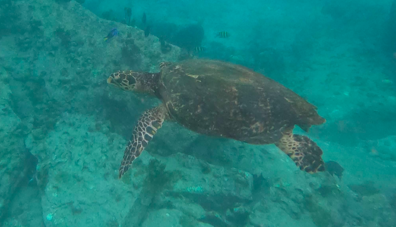Bei einem der vielen Schnorchel Ausflüge hatten Michael und ich eine ganz besondere Erfahrung machen dürfen. Eine Caretta Caretta tauchte vor uns auf und dann auch unvermittelt vor uns ab. Ein wirklich unbeschreibliches Gefühl. Die Schildkröte gesellte sich mit einem Schwarm Fische um eine bestimmte Stelle einer Koralle. Wer weiß was es da abzustauben gab……