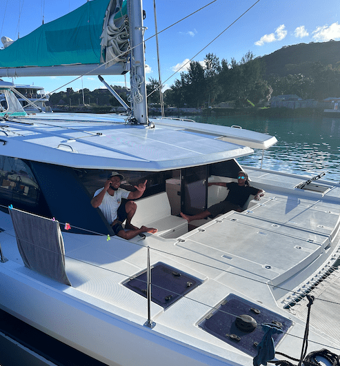 Nachdem das letzte Boarding des Tages erledigt war konnten wir uns mit dem KAT (Katamaran) vertraut machen. Und natürlich auch die Crew kennenlernen.