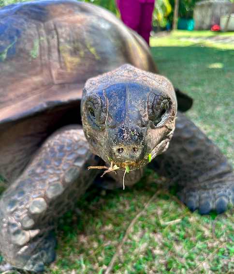 Auf La Digue ( unserer nächsten Etappe der Reise ) gibt es weitere Exemplare dieser Landschildkröten. Sie wollte sich einfach nicht umdrehen und in die Kamera schauen. Das hätte auch viel zu lange gedauert…..