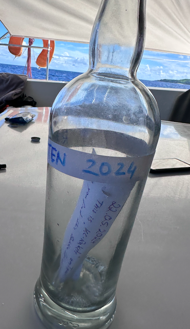 Ein letzter Hinweis : Wer diese Flaschenpost findet darf sich gerne bei uns melden. Wir sind neugierig an welcher Küste , bzw. in welchem Ozean diese gefunden wird. Der Fundort könnte ja ein interessantes Reiseziel einer kommenden Tour sein.